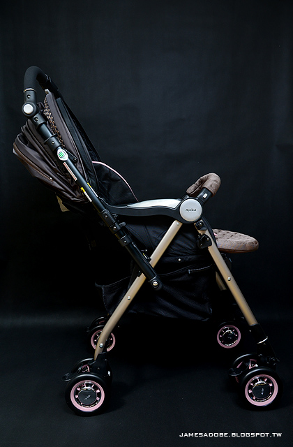 車輪系統算是這款車的精髓,它擁有很讚的『柔軟型懸浮吸震車輪結構』,大狗經過幾天『實駕』後,對這組〝酷熊〞的表現非常滿意!此外,廠商廣告主打的『四輪定位導向系統』,也頗具實用性,簡單講就是四個輪子會自動判別把手前後位置(嬰兒朝前還是朝後),然後鎖定後輪,增加推動車體時的穩定與靈活性。