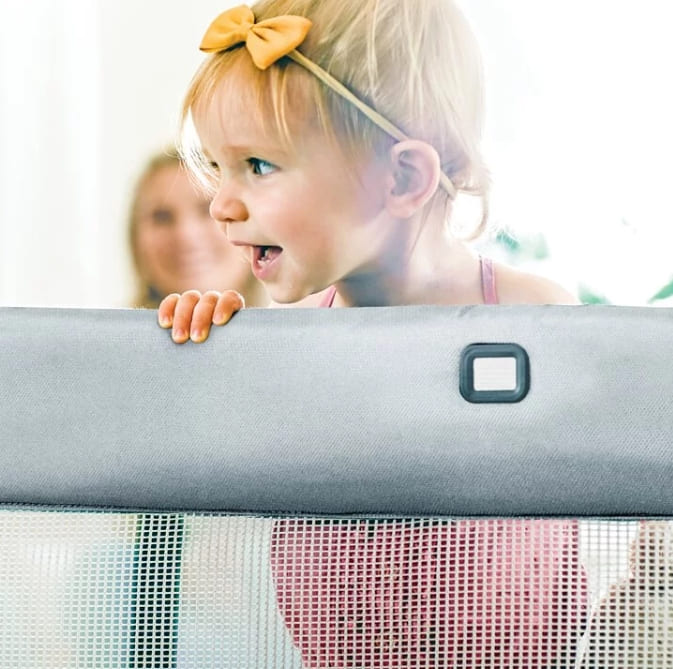 B.低角度:孩子有足夠的空間可玩樂。柔軟的床圍保護寶寶安全,四周皆以透氣網狀材質,可供爸媽隨時觀察寶寶動態。遊戲床底層的床墊,由橫木所構成,堅固耐用且方便拆洗,可放入洗衣袋裡使用慢速機洗。