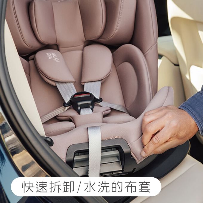 - 座椅360°旋轉系統,旋轉拉桿輕鬆轉向,便於調整前向/後向安裝及躺度調整(3段)