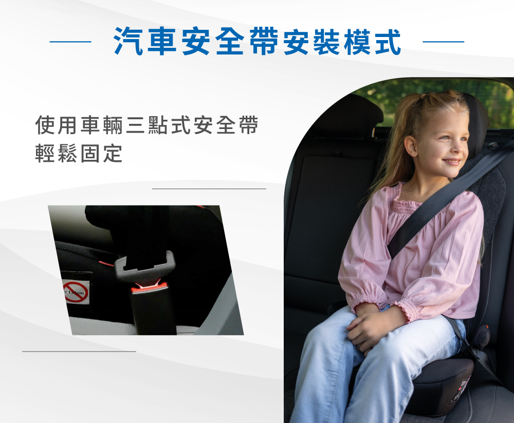 -汽車安全帶安裝模式,使用車輛三點式安全帶輕鬆固定