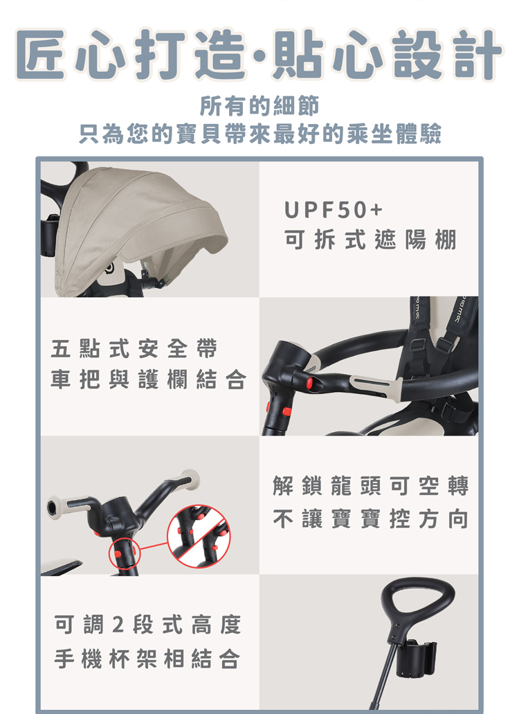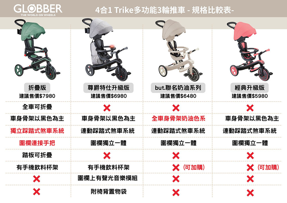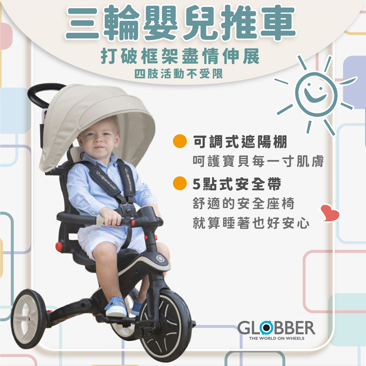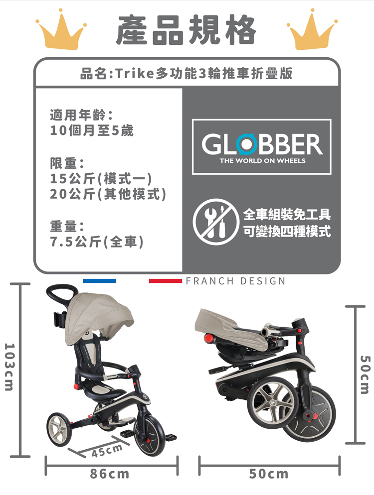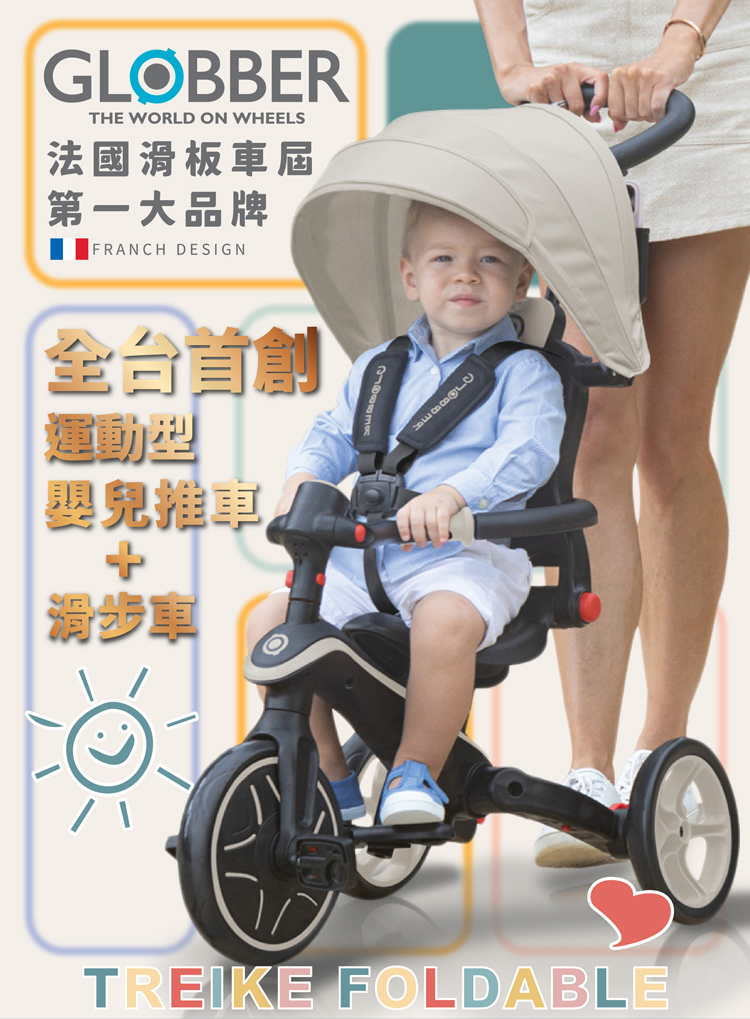 GLOBBER 4合1 Trike多功能3輪推車折疊版-燕麥奶茶色