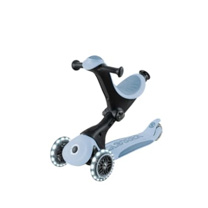 GLOBBER GO•UP 5合1夢幻版360度多功能三輪滑板車(白光發光前輪)-霧霾灰藍