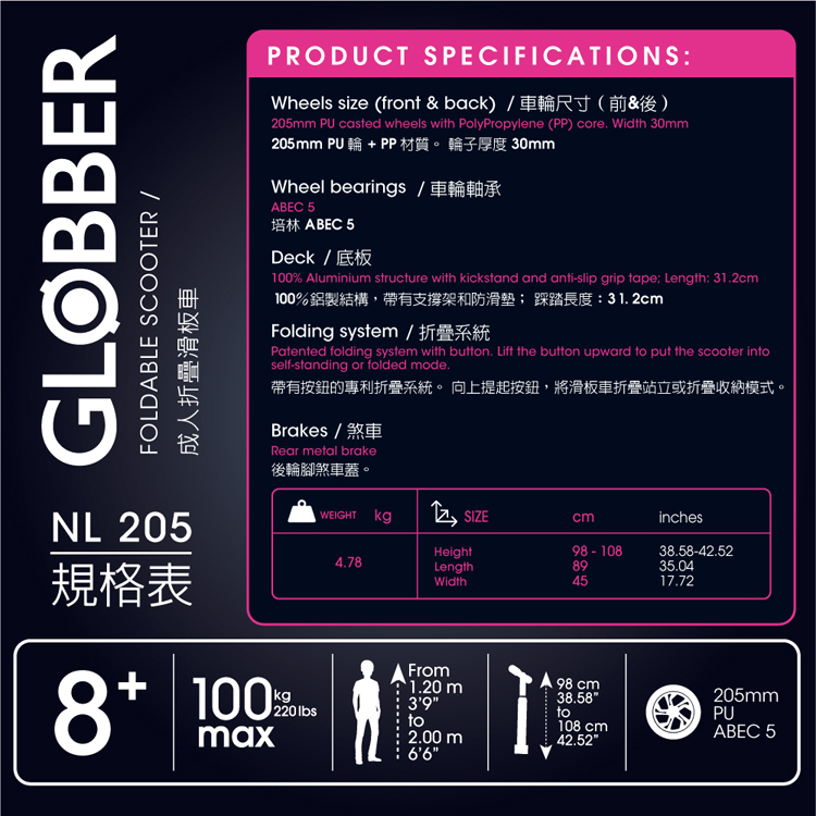 ※規格及重量以實車為準,GLOBBER原廠保留規格變動權利。