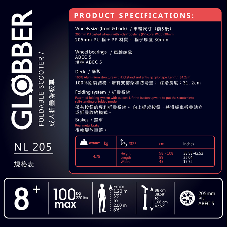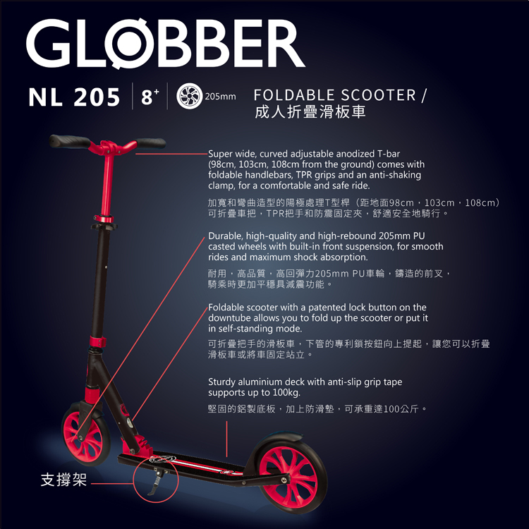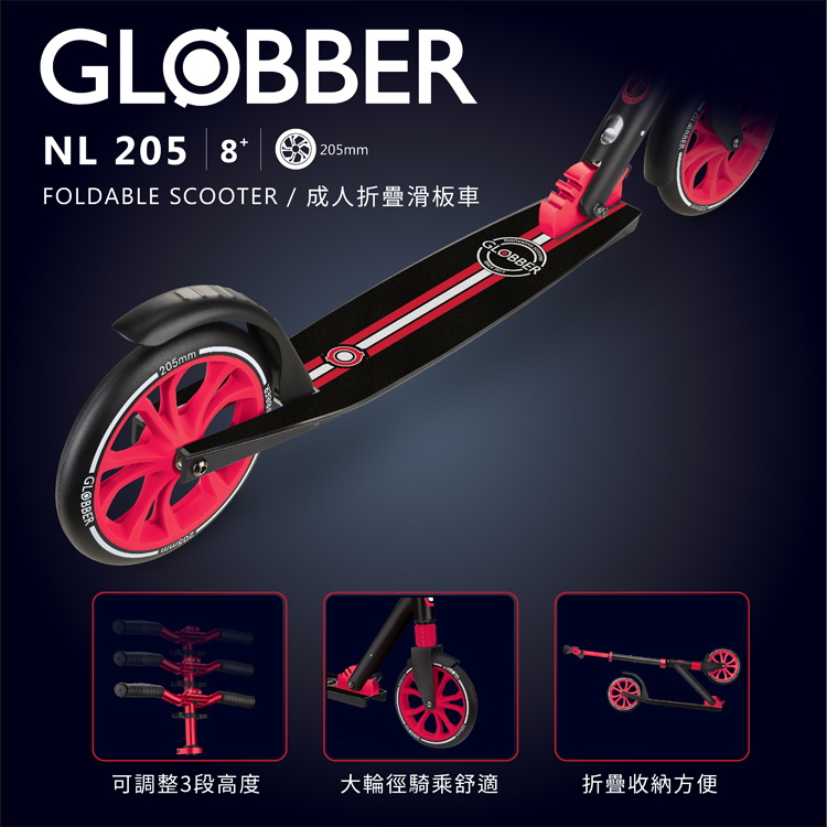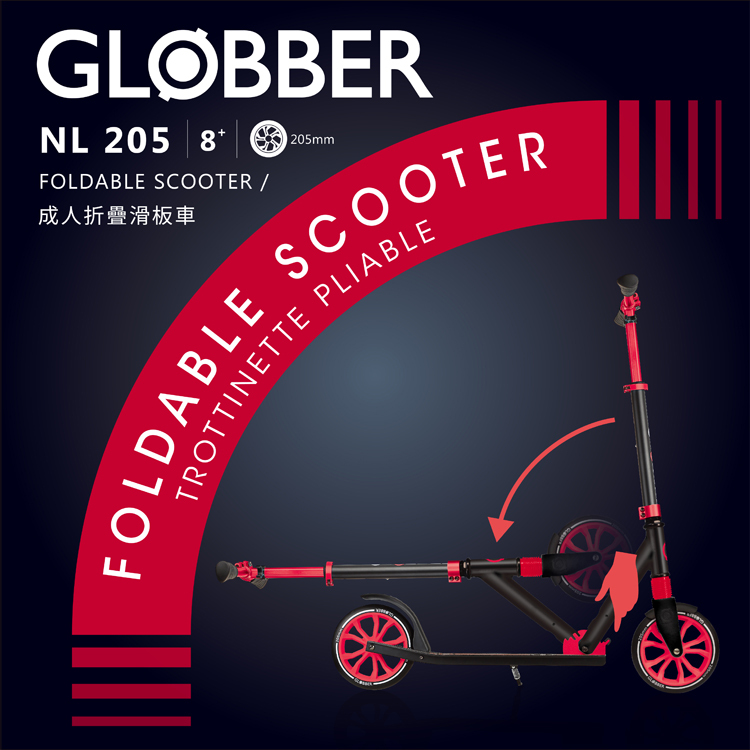 GLOBBER NL 205 青少年/成人折疊滑板車-黑紅