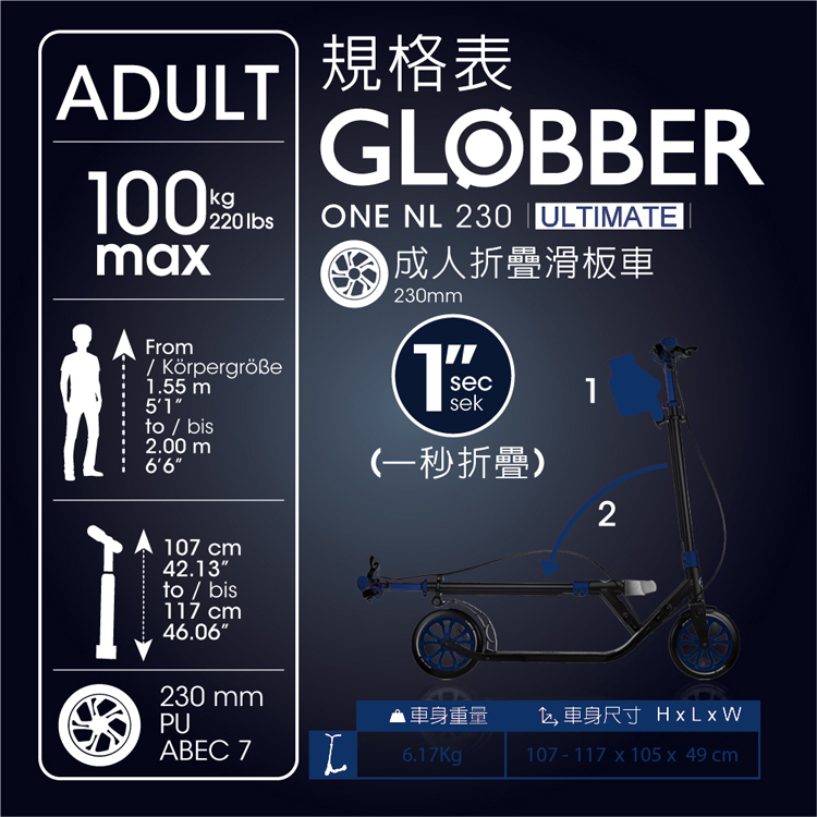 ※規格及重量以實車為準,GLOBBER原廠保留規格變動權利。